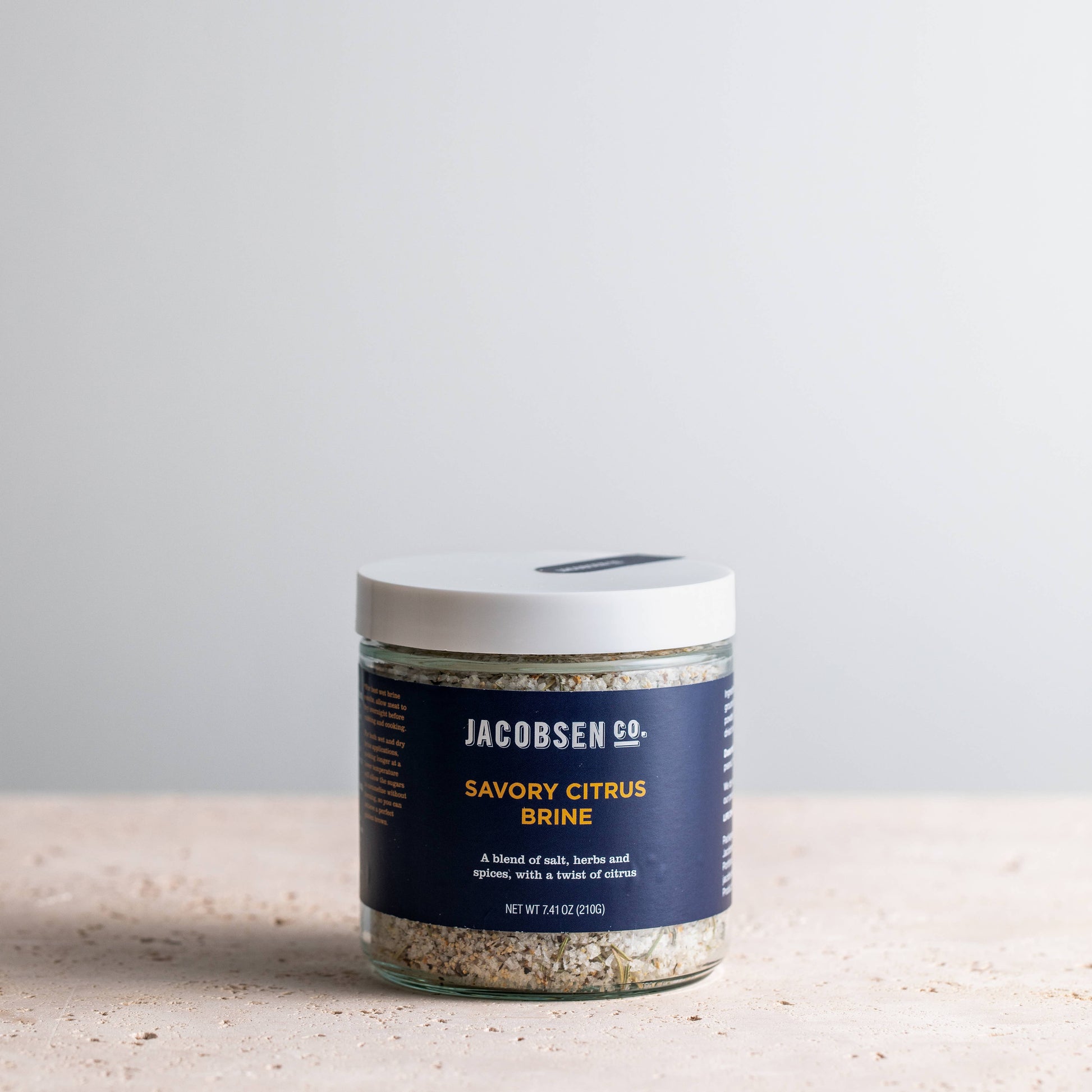 A blend of salt, herbs, and spices, with a twist of citrus. Perfect for wet and dry brining any time of the year. Say "Bye" to Clumping π Our Savory Citrus Brine is back for the holiday season and better than ever! We reformulated our mixture with brownulated, aka pourable, brown sugar, which has less moisture content than typical brown sugar. The result? No clumps and a more even brining experience! For dry brining, 1 jar is sufficient for up to a 14lb bird. For wet brining, 1 jar is sufficient for a whole chicken, 1-2 turkey breasts, or a whole turkey up to 8lbs. For whole turkeys 9-14lbs, you will need 2 jars of brine.